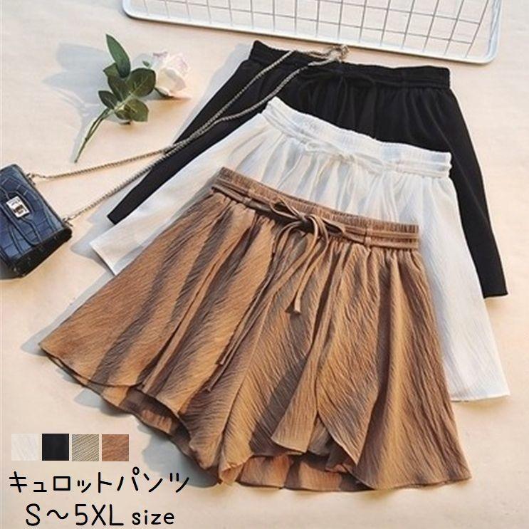 キュロットパンツ キュロットスカート ショートパンツ レディース 短パン ボトムス キュロット ショート丈 フレア ウエストゴム リボン 無地 シワ加 Bot 921 おとりよせ Com 通販 Yahoo ショッピング